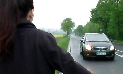 Busty teen masturbates in strangers car