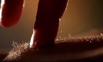 Hairy Litia stroking with a dildo