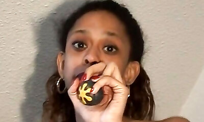 Crazy teenie loves to squirt and play with her tight brown asshole