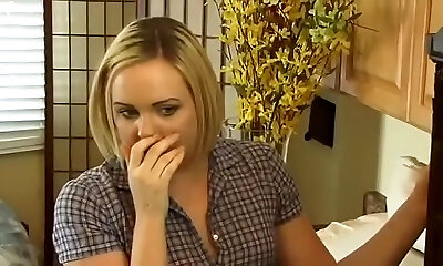 House wife Kelly with big tits providing big cock handjob