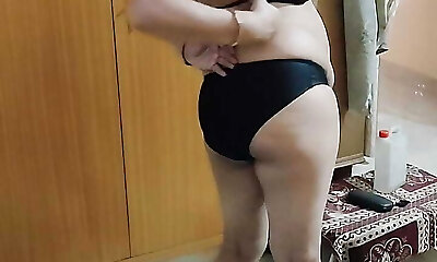 Chubby MILF Shakes Her Big Arse in Panties, Big Tits, with a Hefty Dildo, Fucks Her Hairy Pussy in Front of the Mirror. Pawg. Bbw.