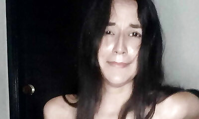 Chubby nerdy dark haired MILF takes a fake penis and exposes her melons