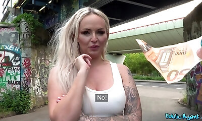 Tattooed blonde biotch Louise Lee fucked in the public place