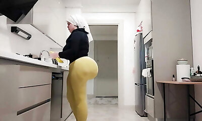 巨大的屁股拉丁加上大小穿连裤袜和犁在厨房