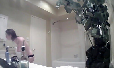 女人在浴室内裤下来,非常惊讶,当陌生人不小心走了进来(角色扮演)