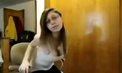 网络摄像头年轻的巨大胸罩戴眼镜在大学