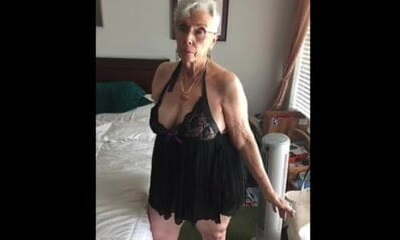 奶奶与巨大的funbags展示了她的资产