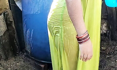 Bhabhi抓住德瓦尔挤奶私下目睹她在浴室小便然后她捣岩石硬