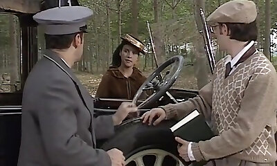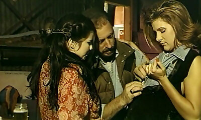 黑发小妞得到拧通过两个帅哥(1970年代复古)