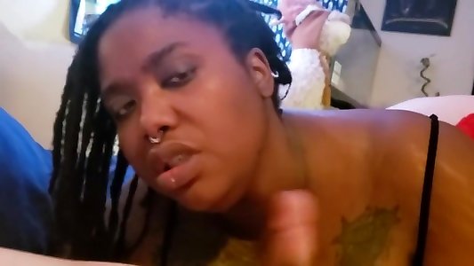 Ebony plumper fellates meatpipe while getting her crevasses licked 3sum