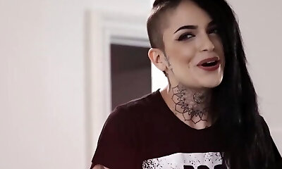 Hot ass emo slut sucking and riding a yam-sized cock in the bedroo