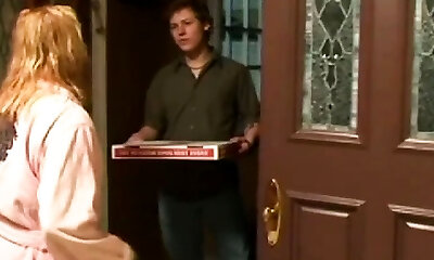 While her fellow is downstairs the brunette milf with big tits bounces her big backside in reverse cowgirl