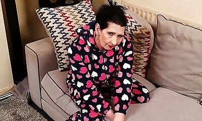 British wanking GILF with real saggy tits is a red-hot cock teaser