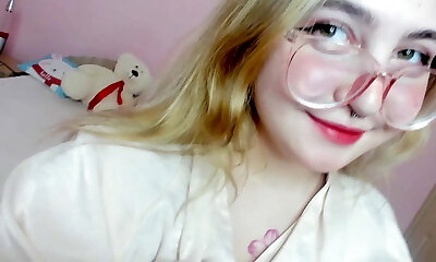 Chubby nerdy webcam fatso pumps her cunt and faps it for me